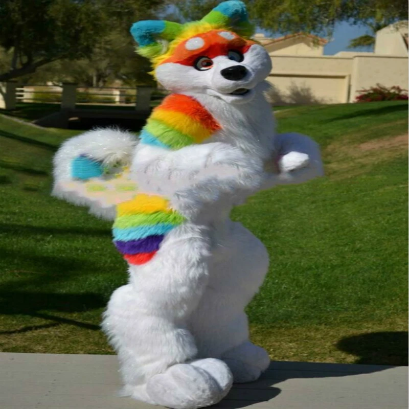 Halloween Rainbow Husky Dog Wolf Fox Mascot Costume Fursuit Suits Cosplay Party Dress Outfits Clothing Xmas Easter Adults Size Mascot Aliexpress